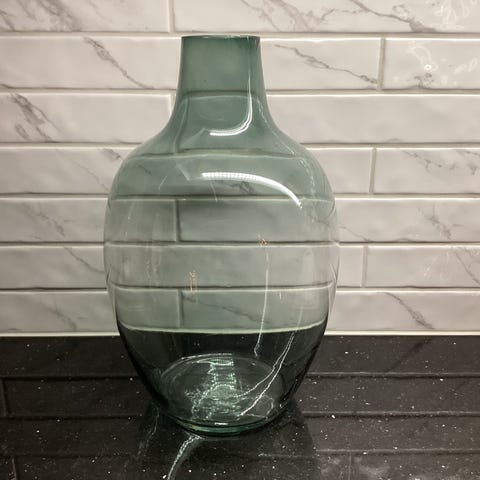 Upea hopeanhohtoinen keramiikkamaljakko. Korkeutta 32cm! Sisältä hopean värinen, pinta luonnonvalkoinen kiiltävän hopeisella paisley-kukkakuvioinnilla. Painava ja tukeva, laadukas.