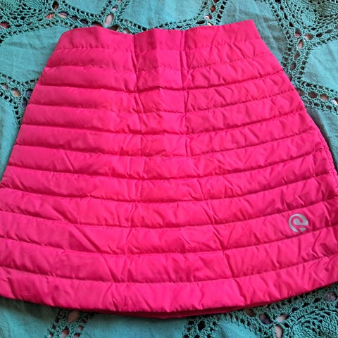 Lasten Reima untuvahame, koko 146 cm, väri pinkki. Vyötäröllä kätevä kuminauha-nappi-säätö ja hameen korkuinen vetoketju. Sopii erinomaisesti lisähämmikkeeksi ohuempien (hiihto)housujen päälle. Muutaman kerran käytetty, kunto erinomainen. Hajusteeton, savuton ja eläimetön talous. Nouto Espoosta tai postit lisätään.