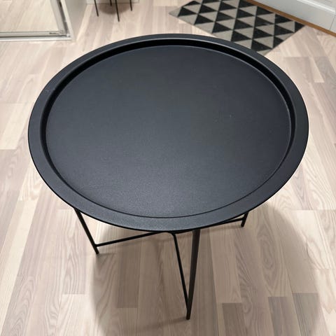 Myydään tukeva tummanruskea puukuvioitu sivupöytä/sohvapöytä. Pöydässä on kätevä alataso säilytykseen (esim. lehdet, kirjat). Sopii olohuoneeseen, eteiseen tai vaikka tv-tasoksi pienempään tilaan.