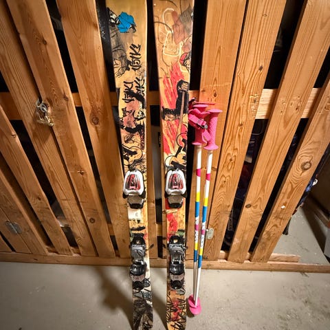 Maalattu jossain vaiheessa valkoiseksi, muistaakseni Völkl Racetiger junior sukset.