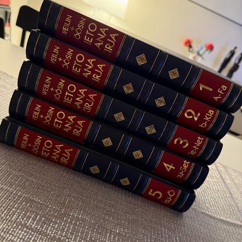 Myydään Weilin+Göösin 5 -osainen tietosanakirja joko luettavaksi tai sisustuselementiksi... Kirjat ovat kuin uusia / lukemattomia...