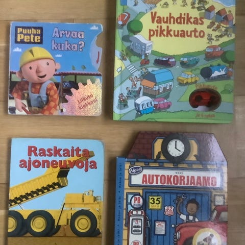 Suuria koneita ja masiinoja sekä käytännön ohjeita lapselle, jota koneet kiinnostavat. Koneet kuvina ja kuvateksteinä. Hinta 3 euroa per kirja tai kaikki 4 kympillä.