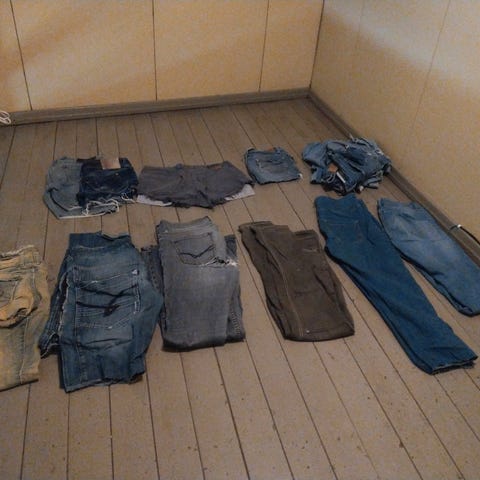 Annetaan Jotexin verhokangasta. Kangas on leikattu kolmeen tai neljään osaan. Muuten kangas on uusi.