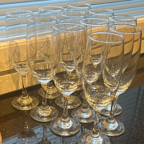 Tarjolla kuvan mukaiset, uudenveroiset, hyvin vähän käytössä olleet kuohuviini lasit, shampanja lasit