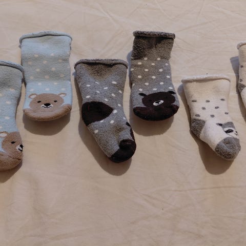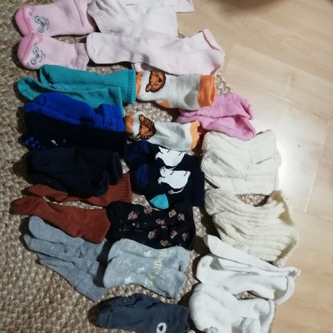 6 paria vauvan pehmosukkia. Ihanan lämpöiset lämmittämään pieniä varpaita talvella. Koko n. 13-15. Ehjiä ja siistejä, vain pientä pesunukkaa pinnassa.