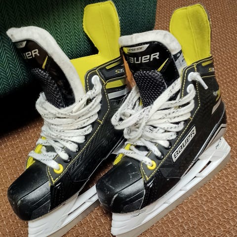 Laadukkaat Bauer Supreme luistimet, lasten koko 36. Musta väri, materiaali sisältää kovan ulkokuoren ja pehmeän sisävuoren. Käytetty vain muutaman kerran eli uudenveroiset. Pieni viilto sisävuoressa, ei haittaa mitenkään käyttöä, kts. viimeinen kuva. Kankaiset terän suojat mukana.