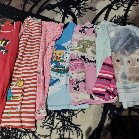 Mukana mm. Ninjago paita, dinopaita, jack&Jones talvipipo, trikoopipo, työkonepaita, shortseja. (Extrana mukaan muutama pikku lelu ja muumi palapeli)