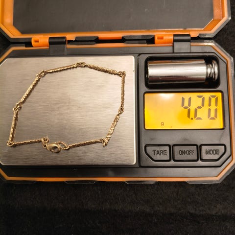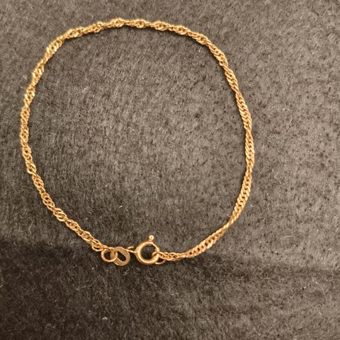 Hyväkuntoinen rannekoru. Pituus 19cm. 585 kultaa. Paino 3.70g. Nouto Kaarinasta tai voin lähettää.