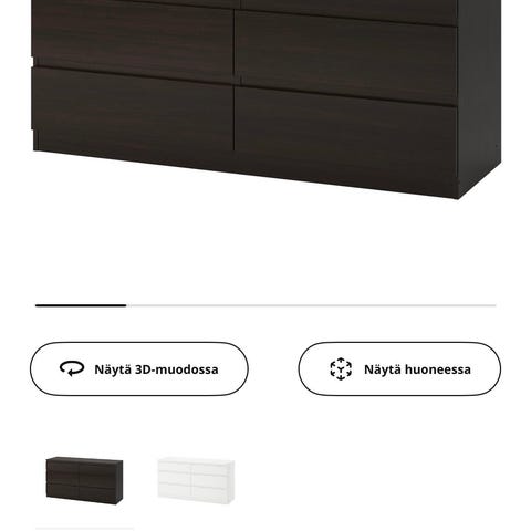 IKEA lipasto, valkoinen väri, kahdella vetolaatikolla varustettu säilytyskaluste.