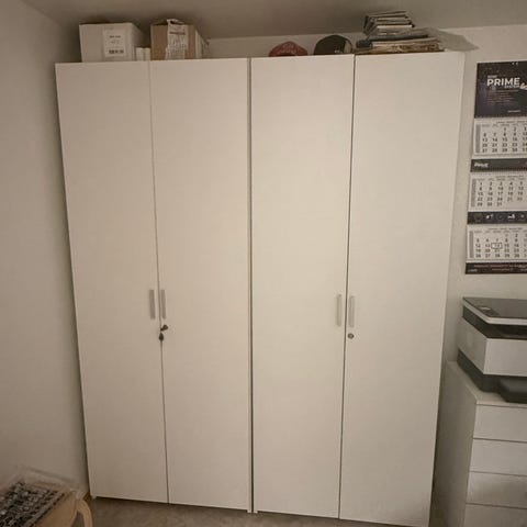 Seinäkaapit liukuovilla 2kpl. Ei kolhuja tai oikeastaan mitään käytön jälkiä. Vasemmanpuoleisen kaapin alapuolella oleva taso ei tule mukaan.