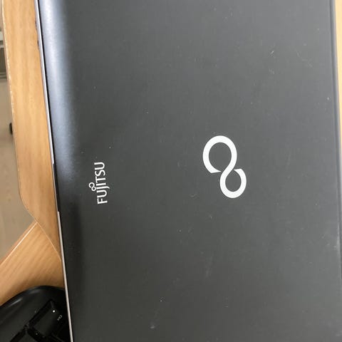 Fujitsu kannettavan tietokoneen akku, litiumioniakku, musta väri. Akku on tarkoitettu Fujitsu-kannettaville tietokoneille ja sisältää tekniset tiedot akun kapasiteetista ja jännitteestä, jotka näkyvät akussa. Otettu käytöstä Lifebook E734 läppäristä.