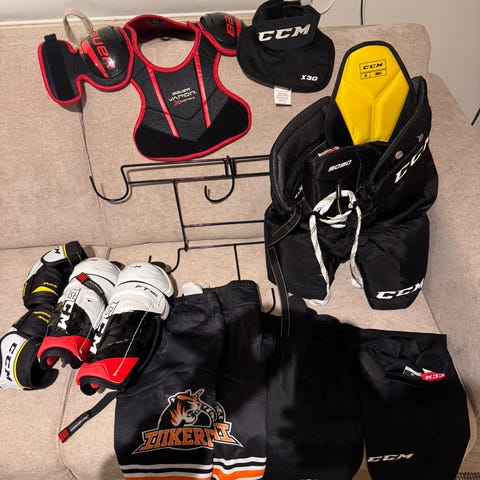 Myydään CCM Youth Hockey Starter Kit. Täysi setti. Hyväkuntoinen. M-koko (=4-7 vuotiaille). Lähtökohtaisesti vain nouto Vantaanlaaksosta.
