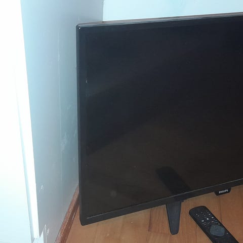 Philips TV, 42-tuumainen, musta väri. Sisältää perusliitännät ja toimii digitaalisen TV-signaalin kanssa.