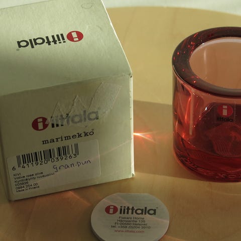 Punainen Kivi kynttilälyhty sekä vihreä.