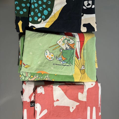 Finlayson muumilakanat, aikuisten koko. Siistit ja ehjät käytetyt. Hajusteeton ja savuton koirakoti.