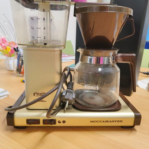 Hyvä moccamaster. Muutama vika löytyy jotka ei haittaa käyttöä: virtanapin valo ei toimi. Kuvassa näkyvä muoviosa hieman rikkk. Tästä kumminkin hyvä keitin vielä vuosiksi eteenpäin.