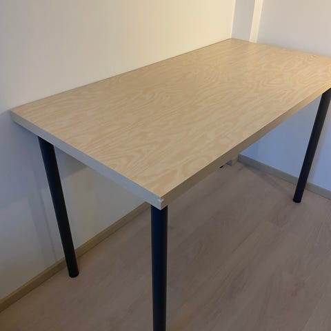 The table is self mixed by given IKEA products and has the adjustable feet so that its height varyies between 70-90 cm.