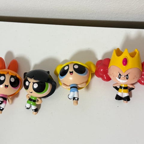 Cartoon Network Powerpuff Girls figuurit, valmistettu vuonna 2000. Setti sisältää Blossomin, Bubblesin ja Buttercupin hahmot. Figuurit ovat muovia