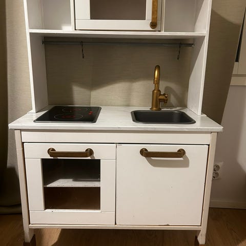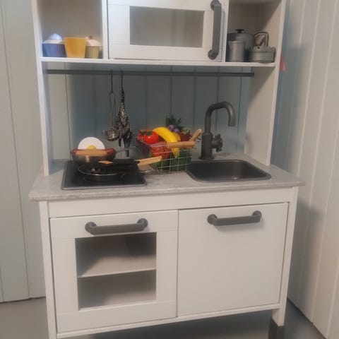 Punainen Ikean duktig leikkikeittiö. Uutena meille ostettu, vain sisäleikeissä käytetty. Kaunis leikitty kunto, en keksi moitetta. Ehjä ja siisti.