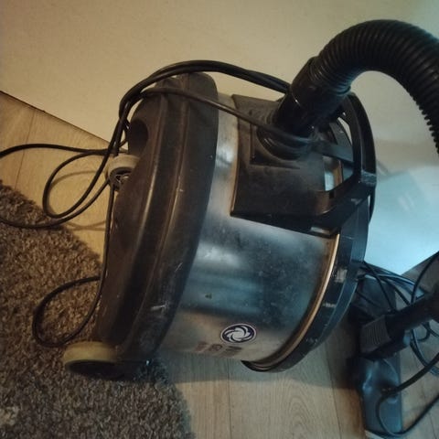 Muutaman kerran käytetty tuhkaimuri. Tällä putsaat kätevästi tulipesästä tuhkat ja muut palamisesta aiheutuvat roskat.