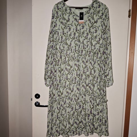 Kaunis, uusi juhlamekko joka jäänyt käyttämättä. Kevyt materiaali, suoranmallinen mekko. Kauniit liehukkeet edessä sekä näyttävä kaulus. Kysy tarkempia tietoja tai mittoja. Mekko on kauttaaltaan joustava.