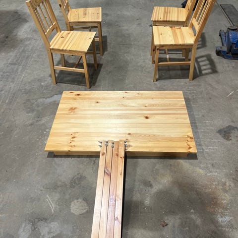 Pöytäryhmä neljälle, tuolit Ikea ja pöytä Hobby Hall tms. Yleiskunto ok, käytönjälkiä esiintyy. Pöydän jalat saa irrotettua. Mielellään nouto!