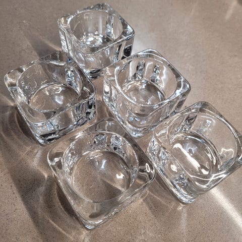 Myydään 12 kpl IKEA Glasig kynttilänalusia. Olleet käytössä yksissä juhlissa. Hyvä kunto. Mukaan sekalainen setti ylijääneitä uusia kynttilöitä.