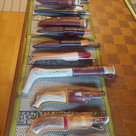 Pikku puukkoja ja pikku linkkari, hinta 50 euroa yhteensä.