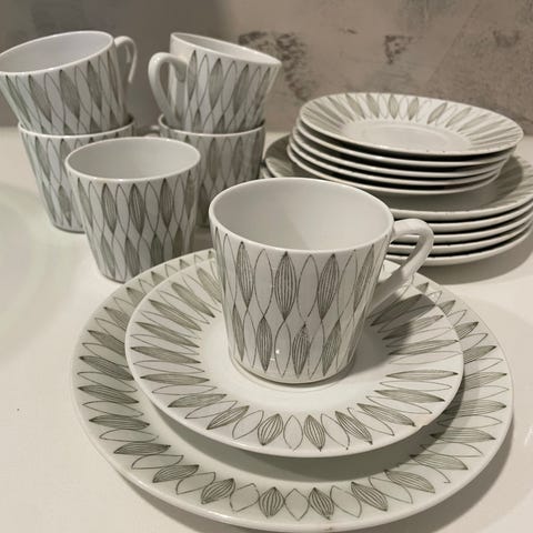 Mitta kuvassa, yksi lautanen hieman krakeloitunut