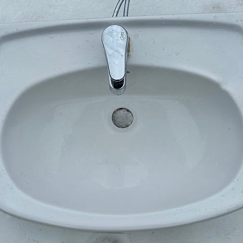 Ido ehjä pesuallas ja Oraksen hana, jossa pesukoneliiräntä. Hana on kääntyvä.