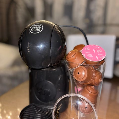 Kahvinkeitin - Nescafé Dolce Gusto MiniMe Kapselikeitin musta/harmaa uudenveroinen. Kahvikone on varustettu vesitankilla ja toimii sähköllä. Sopii erilaisten kahvijuomien valmistukseen kapselikahvijärjestelmällä.