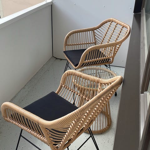 Rottinki pyöreä nojatuoli luonnonväristä materiaalia. Tuolissa on pyöreä istuinosa ja tukeva runko. Sopii sisä- tai ulkokäyttöön esimerkiksi parvekkeelle tai terassille.