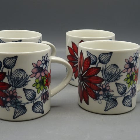 Arabia Runo kesäsäde sarjan mukeja tilavuudeltaan 0,35 l, näitä on neljä kappaletta ja myydään kaikki yhdessä 28 €/kpl eli yhteensä 112 €. Käytettyjä, mutta kunnoltaan erinomaisia.