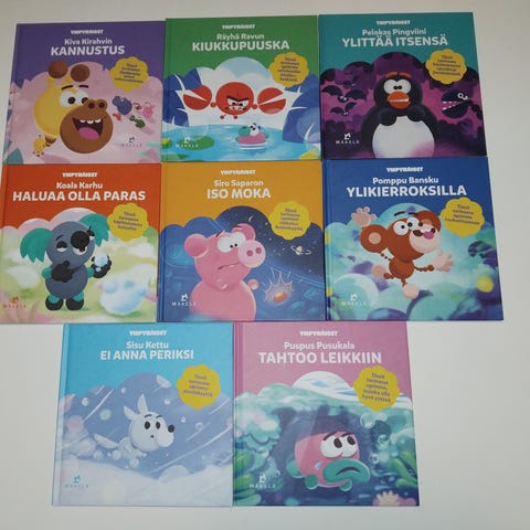 Peppunen lastenkirjat, sisältäen neljä erilaista kirjaa. Kirjat ovat kuvitetut ja suunnattu lapsille.