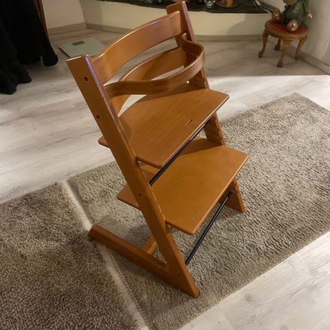 Elämää nähnyt Stokke syöttötuoli vauvaosalla