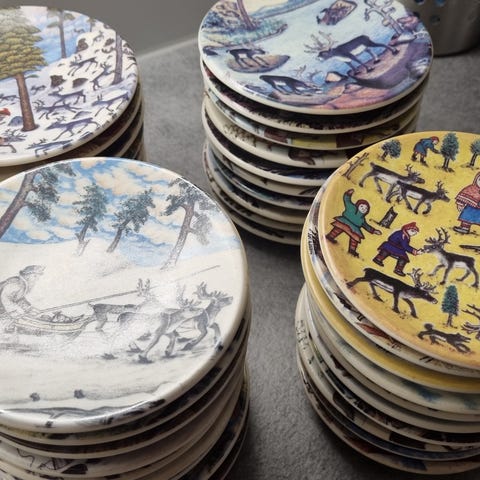 Arabia Sagas sanning ,seinälautaset, kuusi kappaletta