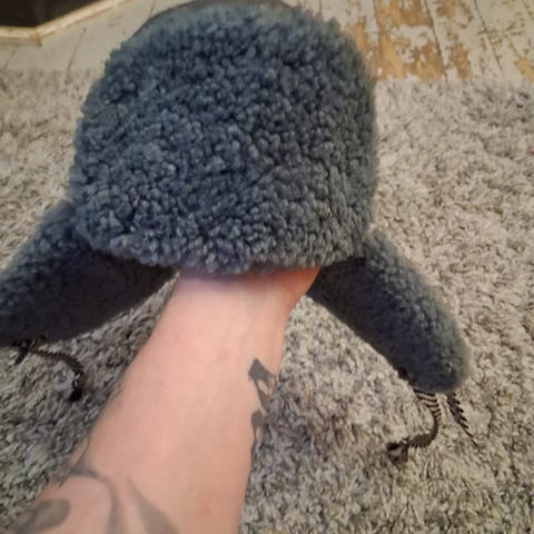koko 58, 3 kruunua ja koko 58 merkintä sisäpuolella, uuden veroinen päähine kylmiin talvipakkasiin, otsalippa ja korvaläpät alas laskettavissa. sisäpuolella toppaus.