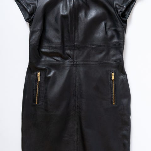 Musta naisten nahkamekko, koko 40. Mekko on valmistettu nahkamateriaalista ja kuuluu muiden mekkojen tyyppiin.