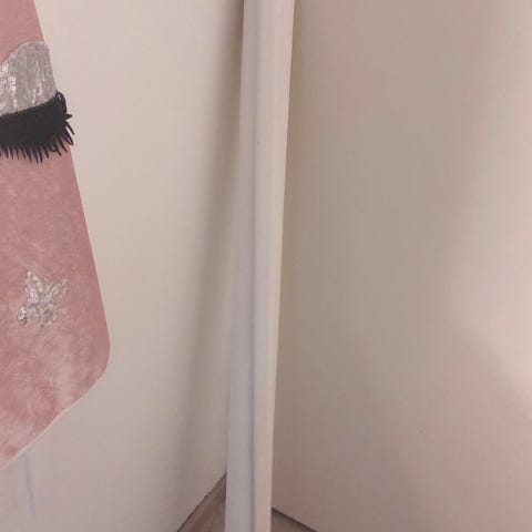 Muuten ihan täysin ehjä ja kannattimet ilman ruuveja tallessa. Verhon alaosassa on likaisuutta, mutta kun tuo on sellaista pehmeää muovia, saattaa fairyllä selvitä helposti, tai sitten tehokkaammaalla, esim. pesupulverilla. Kestää siis rätillä pesua helposti. Itseäni ottaa tuo niin päähän että en sekuntiakaan enää tuhlaa siihen aikaani 🙂.