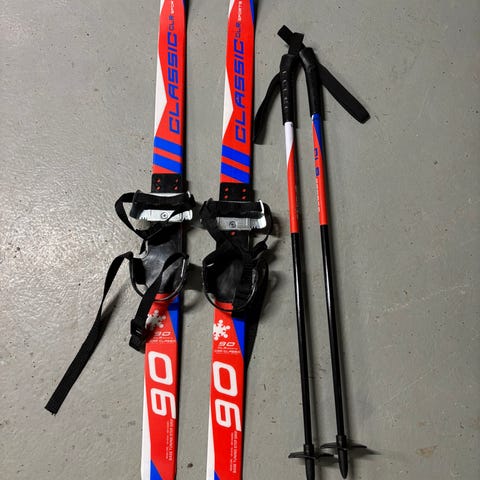 Lasten ensisuksipaketti jolla pääsee suoraan ladulle. 100 cm sukset, 74 cm sauvat sekä suksipidike pari.