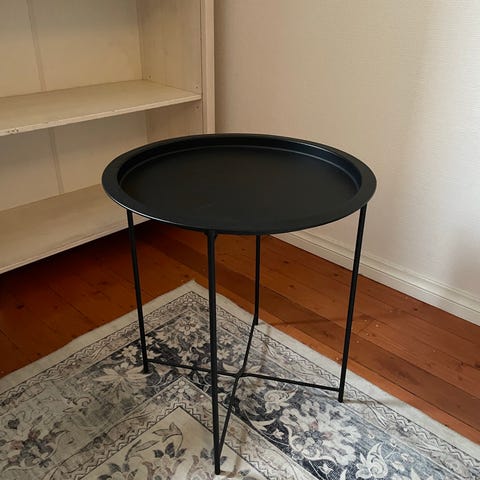 •Uudenveroisessa kunnossa oleva musta, metallinen sivupöytä/sohvapöytä