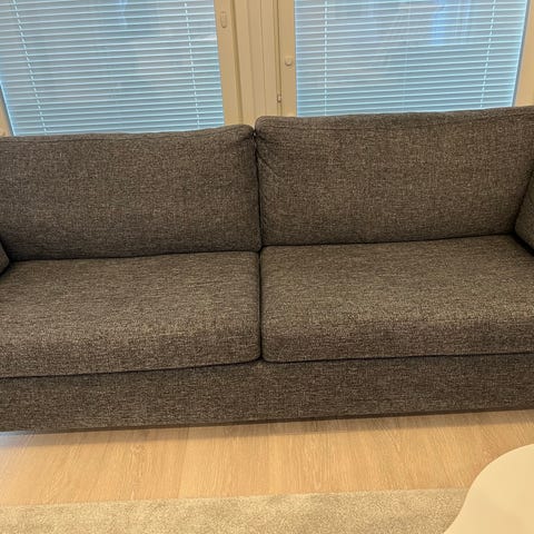 Vekestä 2 vuotta sitten uutena ostettu sohva. Sohvassa on kolme irrotettavaa selkätyynyä ja kiinteä istuinosa. Hiekanvärisellä hygge-kankaalla. Kankaat siistit ja ehjät.