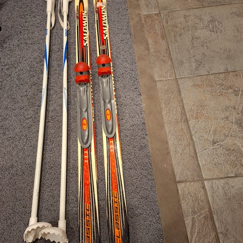 Sukset merkkiä Salomon Team Racing Grip. Pituus 110cm. SNS-siteet.