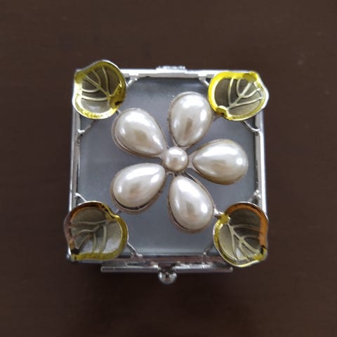 Vanha puinen, kannellinen korurasia. Halkaisija 12 cm.