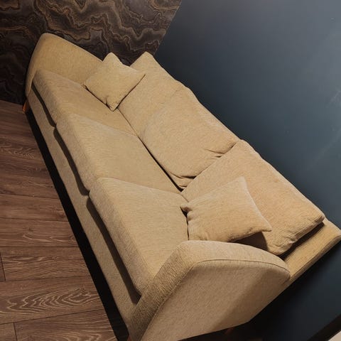 Bröderna Anderssons sohva, harmaa kangas
