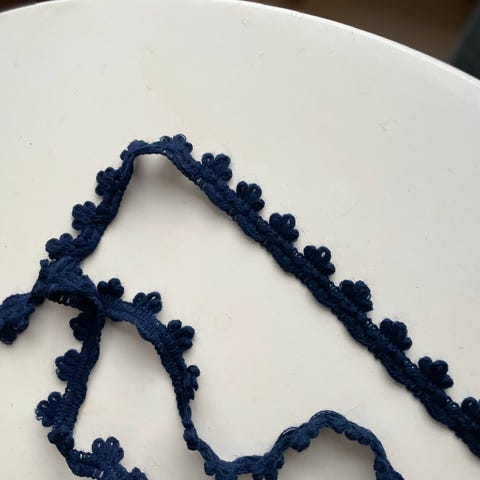 Ruskea pitsikaitale, jossa on kukkakuvioita. Sopii koriste- ja askartelukäyttöön tai vaatetukseen.