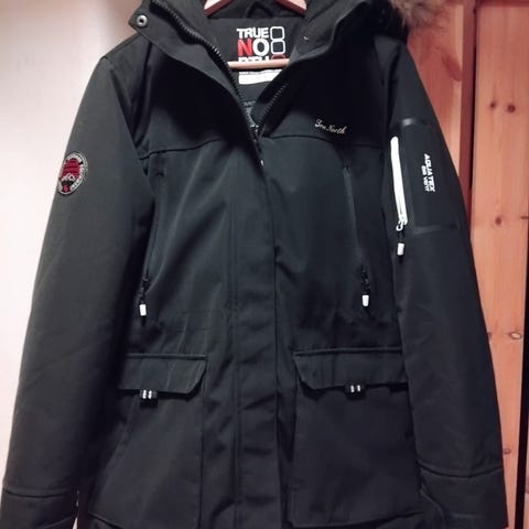 Halti hyvin varustettu laskettelutakki valkovihreä, koko 42, RECCO systeemillä. Ajan tuomaa kevyttä värjäytymistä, tarroissa nukkaa. Oikeassa hihassa on värjäymää.