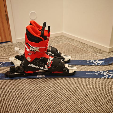 Lasten sukset ja hiihtomonot. Monot kokoa 33 ja sukset n. 117cm, ovat käytössä olleet ja vielä erittäin hyvässä kunnossa.