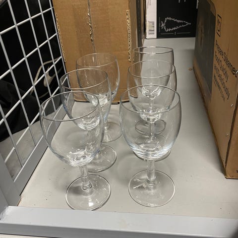 Leonardo valkoviinilasit, kaikki kuusi yhteensä 20 euroa.