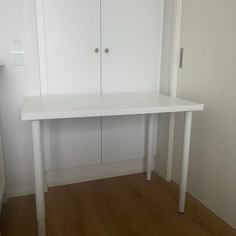Valkoinen Kallax-työpöytä, ostettu vuosi sitten. On ollut kiinnitettynä hyllyyn oikeasta reunasta, jonka vuoksi pieni ruuvinreikä päädyssä. Myös hylly Kallax 2x2 on erikseen myynnissä. Pöydän reunassa muutama naarmu kts kuva. Nouto Lauttasaari.